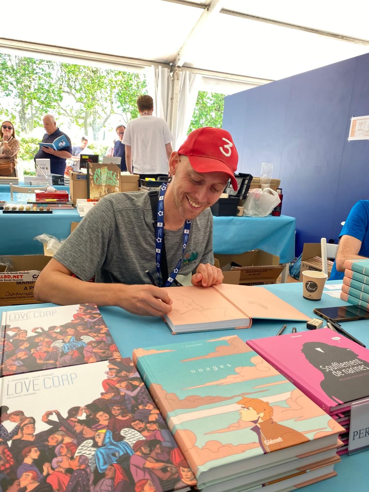 Rencontré par le patron, Lewis Trondheim, au Festival Comédie du Livre – 10 jours en mai, en 2022, il a, comme Enki Dupaquier laissé tomber une carrière professionnelle classique pour se reconvertir dans l’illustration et la bande dessinée.